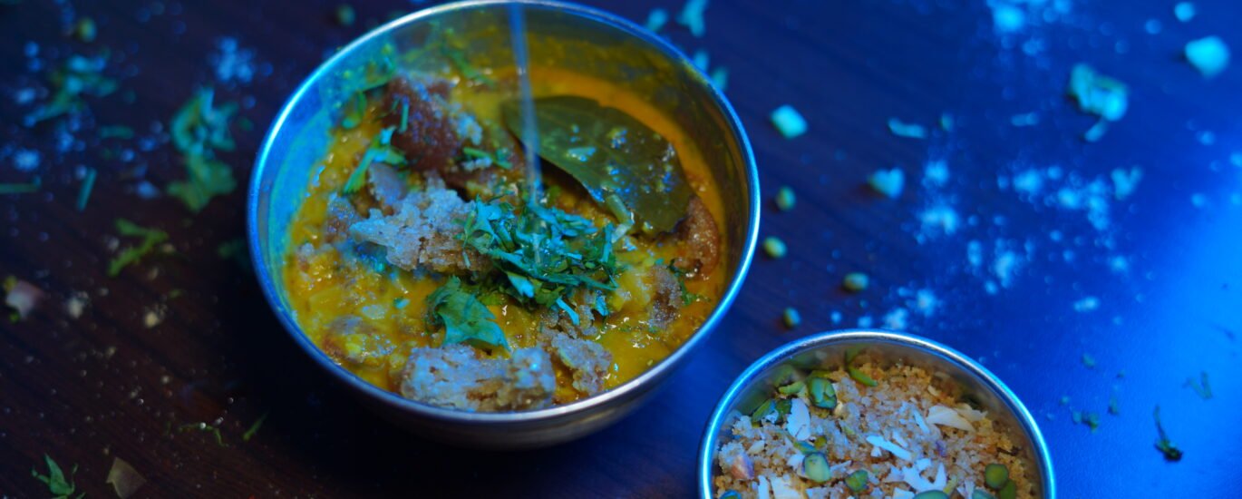 This famous Rajasthani meal stands out at Ghoomar Thali & Restaurant. It includes round wheat breads (bati) baked just right paired with a spicy lentil curry (dal) and sweet churma made from crushed wheat and ghee. When these ingredients are combined, they provide a well-balanced blend of flavours that is both calming and delicious.